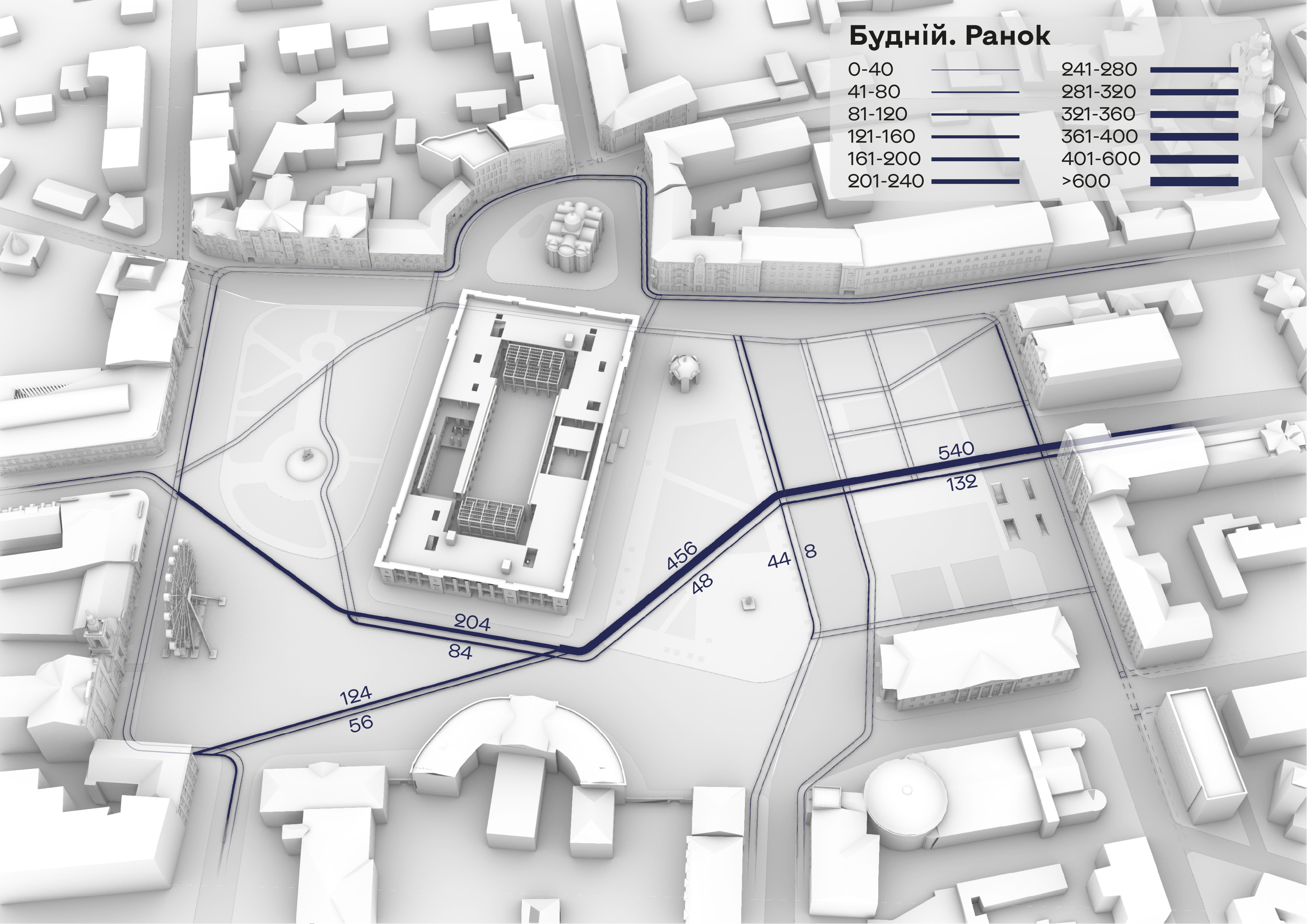 Ми проаналізували історію будівлі, зробили її аналіз, щоб зрозуміти, які зміни відбулись в будівлі і який її стан наразі, порахували пішоходів та зібрали різні активності на площі. Також ми поспілкувались з киянами щодо стану Контрактової площі та зафіксували їхні ідеї того, що може бути в Гостиному дворі, а чого там немає бути.